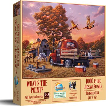 What's the Point? 1000 Piece Jigsaw Puzzle - 1000 pc Jigsaw Puzzle - Completed Size: 20" x 27" - Puzzle Artist: JQ Licensing - Interlocking Pieces and Durable Construction: SunsOut jigsaw puzzles feature interlocking pieces that fit securely, making assembly easier and reducing frustration. Made with high-quality recycled cardboard, they are durable and to easy to work with - Warranty: SunsOut puzzles being made in the USA ensures high manufacturing standards include a worry-free guarantee ensuring any issues with missing or damaged pieces are resolved, reflecting SunsOut's commitment to quality and customer service. - Eco-Friendly Materials: SunsOut puzzles are crafted with eco-friendly materials