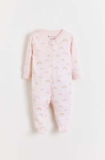Printed pima cotton footie with long sleeves and a full-front closure from neck to toe. Made of soft pima cotton. The print also features glow-in-the-dark details, which glow when exposed to natural light.