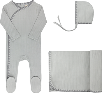 The Whip Stitch Collection - Take Me Home Set includes a cozy footie, blanket and a matching bonnet, making it the perfect gift for welcoming a new baby. Crafted from soft, breathable fabric .This set offers both warmth and comfort. Gift a bundle of softness and style that’s sure to be cherished from day one.