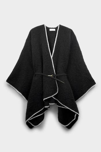 The Whipstitch Blanket Cape features an open-front design accented by chic whipstitch edge detailing. Made from a soft, cozy fabric, it makes the perfect layering piece for year-round styling. Complete with a detachable vegan leather Katie Loxton logo-embossed belt, it allows you to cinch the waist for a more tailored, structured silhouette.