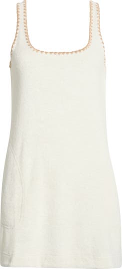 Trimmed in whipstitching and made from plush cotton-enriched French terry, this easygoing dress is ready to pair with your beach vacation plans.