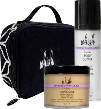 Give extremely dry skin the ultimate pampering with this exfoliate and hydrate duo. Our Whish Sugar Scrub gently buffs away dryness with a powerful trio of exfoliants and a triple dose of moisturizers, leaving skin smooth, refreshed, and perfectly polished. Follow with our indulgent lavender body butter, formulated with a triple antioxidant blend to soften, soothe, and lock in lasting moisture. Together, this luxurious set leaves skin silky smooth and deeply hydrated.