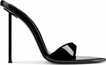 The Whiskey Slipper 120 is a minimalist open-toe slip-on heel that combines sleek design with bold statement style. Featuring a single vamp strap and sculptural metal-plated stiletto heel (120mm), this handmade vegan shoe delivers sophisticated elegance. Crafted with a vegan upper and insole, paired with a durable leather and rubber outsole, it's designed in LA for the modern woman seeking luxury footwear that aligns with ethical values. Perfect for elevated everyday wear or special occasions