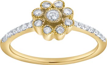 Softly radiant and beautifully detailed this floral ring features 0.30 carats of natural diamonds arranged in a graceful flower design set in polished 10K gold. Each diamond sparkles delicately and captures the quiet beauty of petals kissed by light. Perfect as a symbol of love or a cherished personal treasure it brings a gentle shimmer to any occasion. Crafted with ethically sourced natural diamonds. Diamond carat weight may vary up to 0.05 carats from the stated weight.