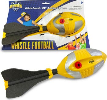 ANYWHERE SPORTS: WHISTLE FOOTBALL - Get ready to level up your backyard games with the Anywhere Sports Soft Foam Whistle Football! This 12-inch wonder zips through the air, producing a playful whistle that turns every throw into an exhilarating experience. Designed to be easy on little hands, our foam football is lightweight, safe, and super comfortable to catch—even for the youngest players. Whether you’re fine-tuning your spiral in the driveway or enjoying a family-friendly match at the park, this whistle football quickly becomes the highlight of any gathering. Kids will love the bright yellow color that really pops against a clear blue sky, while the sleek silver trim adds a dash of style. Plus, parents can rest easy knowing this foam ball keeps everyone’s fun in check—no bruised arms or broken windows here! Recommended for ages 5 and up, it encourages active play, develops coordination, and brings smiles to every pass. Packaged in a vibrant gift box, this whistle football also makes a fantastic birthday or holiday surprise. Anywhere Sports is proudly brought to you by Thin Air Brands, a Colorado USA-based company dedicated to creating innovative, family-friendly toys. Get ready to throw, catch, and whistle your way to endless outdoor fun!