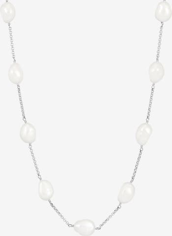 Made in our London studio, this sterling silver necklace features large, lustrous white baroque freshwater pearls suspended on fine chain. The necklace is finished with our signature contemporary hammered loop and T-bar clasp.