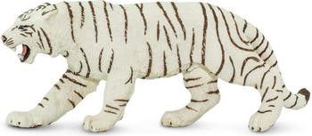 Experience the rarity and majesty of the White Bengal Tiger with Safari Ltd.'s beautifully crafted toy figurine. These unique creatures, a variant of the Bengal Tiger, boast an all-white coloration due to a lack of the pigment pheomelanin. Astonishingly, White Bengal Tigers tend to grow larger and mature faster than their orange counterparts, a fascinating mystery for scientists. In the wild, the sight of a White Bengal Tiger is incredibly rare, with estimates suggesting just one white cub born in every 10,000 to 15,000 births. Their striking coloration results from a recessive trait, requiring both parents to carry this trait for a chance at producing a white cub. This White Bengal Tiger toy figurine, part of the Wild Safari® Wildlife collection, is meticulously hand-painted and expertly crafted for lifelike detail. Snarling and commanding, this tiger figurine brings a touch of the wild to any setting. Constructed from durable, high-quality PVC, it is non-toxic, BPA-free, and safe for children ages 3 and above. Measuring 6 inches long and 2.5 inches tall, this figurine is about an inch longer than a soda can resting on its side. It's the perfect size for active play or display, making it an ideal gift, educational tool, or imaginative play piece. Dive into the world of wildlife with this stunning White Bengal Tiger figurine from Safari Ltd.
