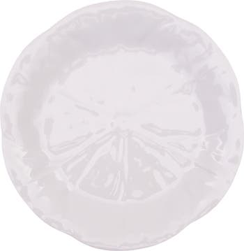• Four white melamine salad plates with a gently ruffled organic edge and an embossed interior detail are included in this set, each measuring 8.5 inches and bringing a clean, refined botanical aesthetic to everyday dining and table settings.