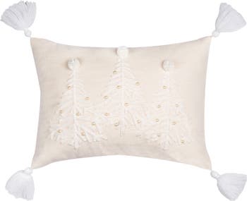 Bring a touch of elegance and festive warmth to your home this holiday season with this 12" x 16" Christmas accent pillow. Featuring a beautifully crafted white Christmas tree adorned with pearl bead embellishments, pompom star accents, and playful tassels, this pillow offers a timeless design that instantly enhances your seasonal décor. The petite size makes it a versatile option for styling on sofas, chairs, entryway benches, or beds, while its cotton blend fabric provides both durability and charm. The carefully considered details allow it to blend seamlessly into a range of décor styles, from traditional to contemporary, creating a cozy and inviting atmosphere throughout the winter months. Beyond its decorative appeal, this pillow also makes a thoughtful holiday gift, offering recipients a meaningful way to celebrate the season in their own homes. Stylish, versatile, and festive, this pillow is the perfect finishing touch for your Christmas décor.