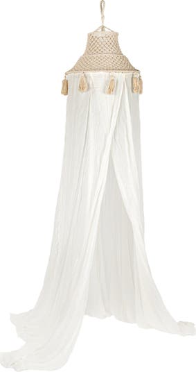 White Cotton Macramé Canopy with Tassels