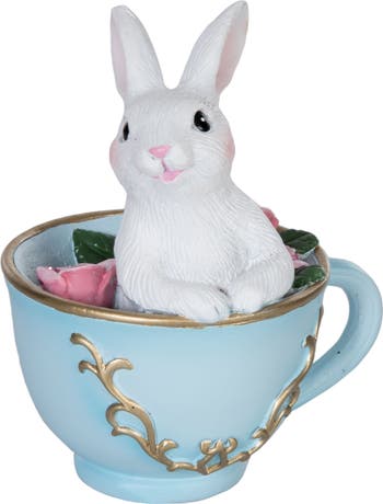 Gallerie II White Easter Bunny Blue Tea Cup Decorative Small Figurine 4", Main, color, Pink