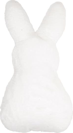 - This adorable shaped accent pillow features a classic bunny silhouette complete with two upright ears and a rounded body, crafted in pure white faux fur that captures the sweet essence of springtime and brings delightful Easter charm to your seasonal home decorating displays.