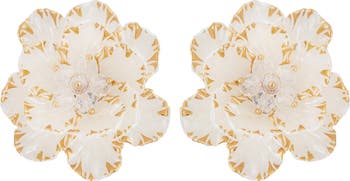 14-karat-gold accents beam on these white enamel earrings that unfurl sculptural flowers on your lobes.
