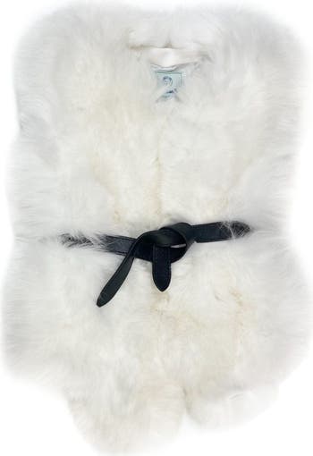 - Fuzzy and soft faux fur vest for girl Asymmetrical hem Hook closure Fully lined 100% Polyester Removable genuine leather belt Care Instructions: Dry clean recommended