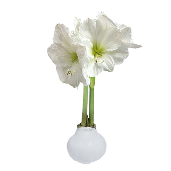 White Flower Base 36+ Keep 59-77 degrees F (15-25 degrees C), No watering Necessary, in case of wax or glitter coating, do not leave the bulb in direct sunlight or near heat to avoid melting. After blooming, the coating can be removed, and the bulb can be composted or planted. In case of wax or glitter coating, cracks may appear from the growth of the stalk while blooming. Not edible.
