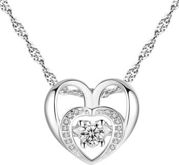 White Gold Double Heart Necklace with Cubic Zirconia Necklace