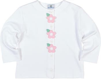 Lightweight and lovely, this white interlock knit cardigan is crafted from soft 100% cotton—perfect for layering on breezy days. Pink appliqué flowers add a touch of cheerful charm, while the button-front closure and long sleeves make it an easy, polished extra layer over dresses, tops, or rompers. A charming all-weather layer made for comfort, ease, and picture-perfect moments.