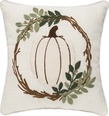 C&F Home White Pumpkin Wreath Pillow, Main, color, Green
