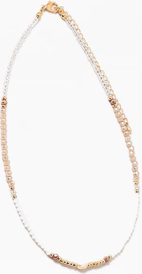 Tiny ice beads come together with a freshwater pearl and gold beads.