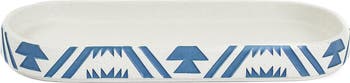 A soothing, dual-tone geometric pattern adds eye-catching flourish to this versatile stoneware tray you can put to good use in any room of your home.