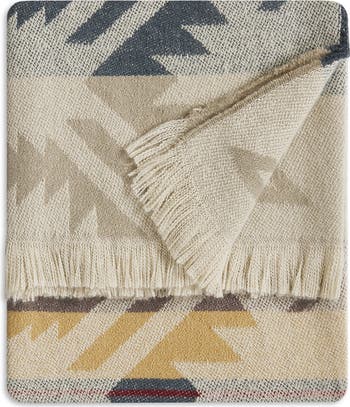 Brighten your favorite cozy nook with the Kilim-inspired pattern of this throw blanket woven in a versatile year-round weight and finished with jaunty trim.