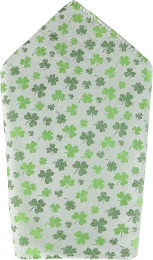 The White Shamrock Collection is a modern twist on the traditional shamrock design. Woven on a white base silk, the different shapes and colors of the shamrocks almost give off a metallic look, which will make this pocket square pop in any outfit. Elevate your look with the gorgeous pocket square that shows off your Irish pride, your luck of the Irish, or just your overall like for shamrocks with this dapper pocket square. Pairs perfectly with assorted colors of suits and tuxedos, along with khakis and jeans for a night out. Pocket square measures 12 inches by 12 inches.