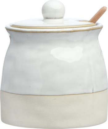 White Stoneware Sugar Pot with Lid
