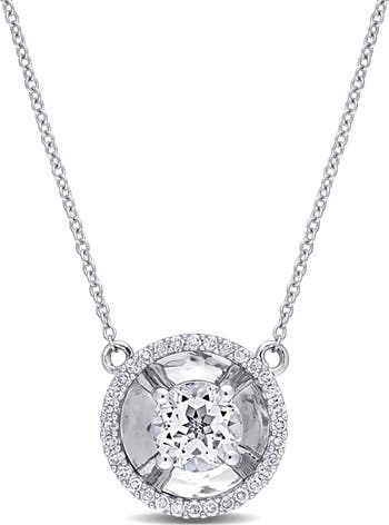 Elevate your style with this White Topaz and Diamond Margarita Style Pendant in 10k White Gold. Featuring a stunning white topaz center, surrounded by a sparkling diamond halo, this pendant exudes sophistication and grace. Perfect for any occasion, its radiant design will add a touch of elegance to your jewelry collection. A timeless piece that shines with beauty and charm.