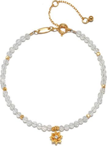 Throughout the world, the lotus represents new beginnings, rebirth and infinite potential. In nature, the lotus roots itself in mud, arising daily from the murky water to burst into bloom. White topaz is the birthstone of April and the gemstone of clarity, bringing focus to the mind and strengthening insight. Its clear color is associated with brilliance and self-awareness, fostering a higher connection with personal truth. The stone is believed to ignite intuition while strengthening the powers of manifestation.
