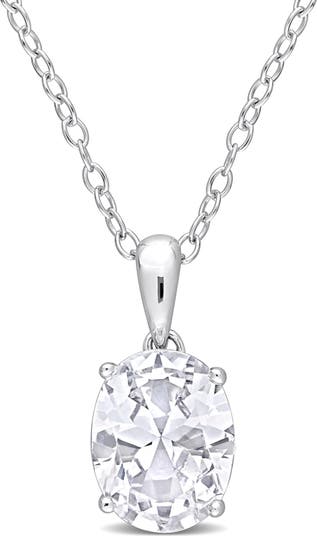 This shimmering solitaire white topaz pendant necklace gives an elegant touch to your appearance. This pendant is crafted in sterling silver and features an oval shaped white topaz gemstone as the center stone with a 4 prong setting to outshine the elegance with a hint of boldness. This pendant comes with a polished finishing and is suspended from an 18-inch cable chain.