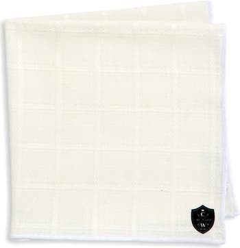 Off-white linen patterned in a tonal windowpane check relaxes a pocket square that brings a dapper finish to any warm-weather look. The soft fabric works especially well with textured formalwear in not-so-formal settings.