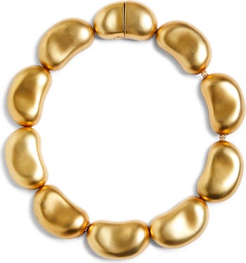 Lustrous matte-finish beads reminiscent of beans comprise this 16-karat gold-plated choker necklace that finishes off your statement look.