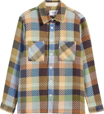 An oversize check pattern and chunky, textured weave underscore the comfortable vibe of a shirt made with recycled cotton and a fit you can wear like a jacket.