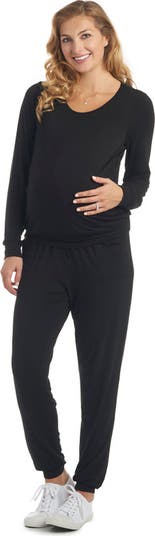 For the on-the-go mama who wants to look pulled together--but feel like she's still in her PJs! Made of a deliciously stretchy-soft knit jersey, this long-sleeve top and jogger pant set flatters during pregnancy and post-partum.