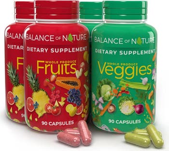 - Whole Health System: A discounted bundle that includes all Balance of Nature dietary supplements; Fruits & Veggies and Fiber & Spice