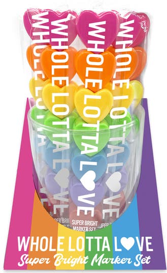 This jumo set of six super bright markers with a heart-shaped handle and a chisel tip are sure to be a favorite during arts-and-crafts times.