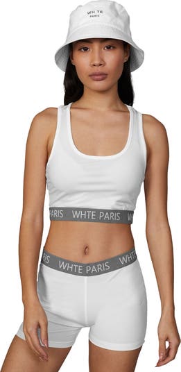 The 'Whte Signature Bra' is a new addition and must have from the brand, with a minimal aesthetic and iconic logo.
