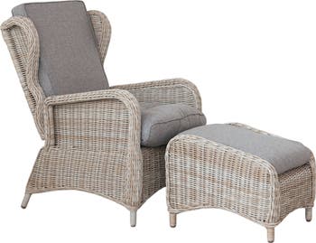 - A chic and cozy ensemble, this wicker and aluminum chair paired with an ottoman exudes a natural charm with its grey and natural tones
