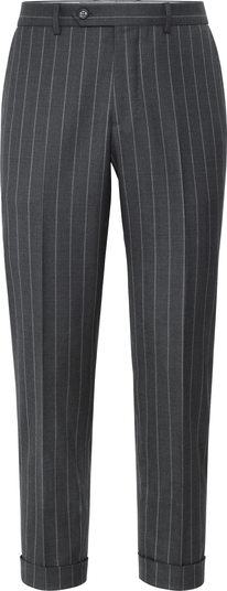 The sartorial taste of the wide chalk stripe is enhanced by the sophisticated quality of the pure wool 150s twill. The processing of the very fine yarn allows the creation of a lightweight fabric that is also compact and very comfortable.