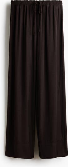 Trousers in woven fabric featuring an elasticated, drawstring waist with a small frill trim. Loose fit with wide legs.