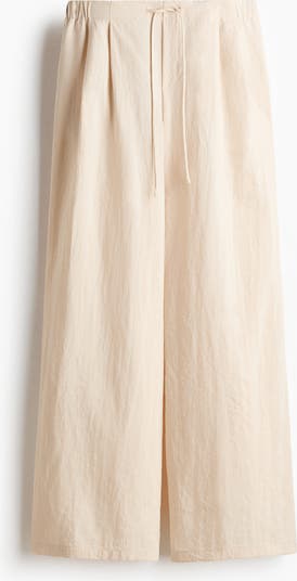 Trousers in a viscose-blend weave featuring a drawstring waist with covered elastication at the back and a fake fly. Wide legs with pleats at the top.