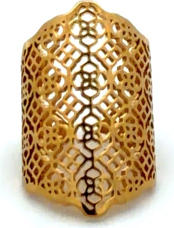 A bold wide band ring featuring intricate openwork filigree detailing. The lace-inspired design adds texture and dimension, while the polished finish gives it a refined look. An eye-catching statement piece for everyday or occasion wear.