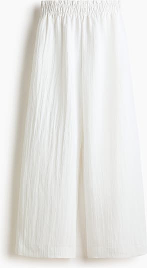 Wide-leg trousers in twill featuring a high, elasticated waist with a small frill trim.