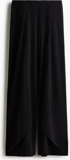 Fitted trousers in jersey featuring a high waist with concealed elastication and wide legs with a wrapover detail over each leg for added movement.