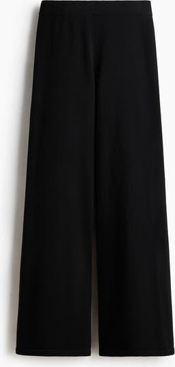 Trousers in a soft knit with an elasticated waist and wide, extra-long legs with ribbing at the hems.