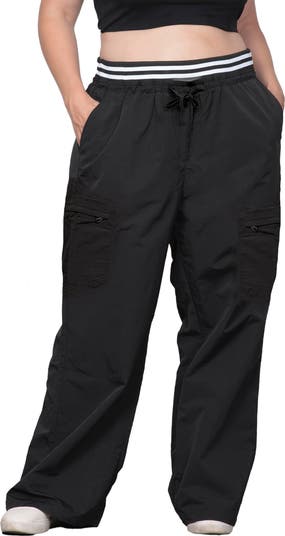 Sporty stripes encircle the comfy waistband of these roomy cargo pants cut with wide legs.