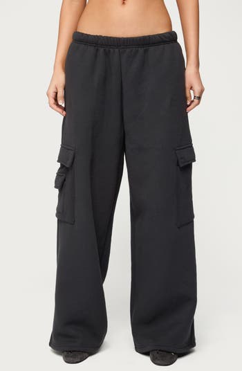 Roomy cargo pockets bring a trendy twist to these full-length, wide-leg sweatpants made from comfy cotton fleece.