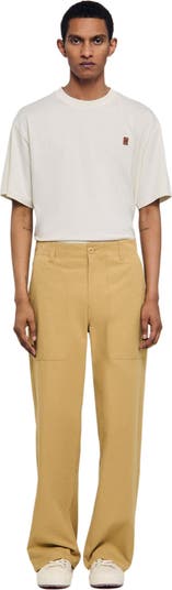 Wide-leg cotton workwear-style trousers with two large front pockets and two flap pockets at the back.