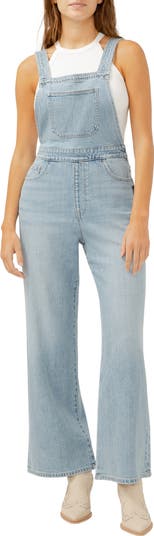 Revive a childhood favorite with these wide-leg overalls cut from low-stretch denim in the perfectly faded wash.