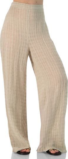 Sleek wide-leg pants with an elastic waistband and no pockets.